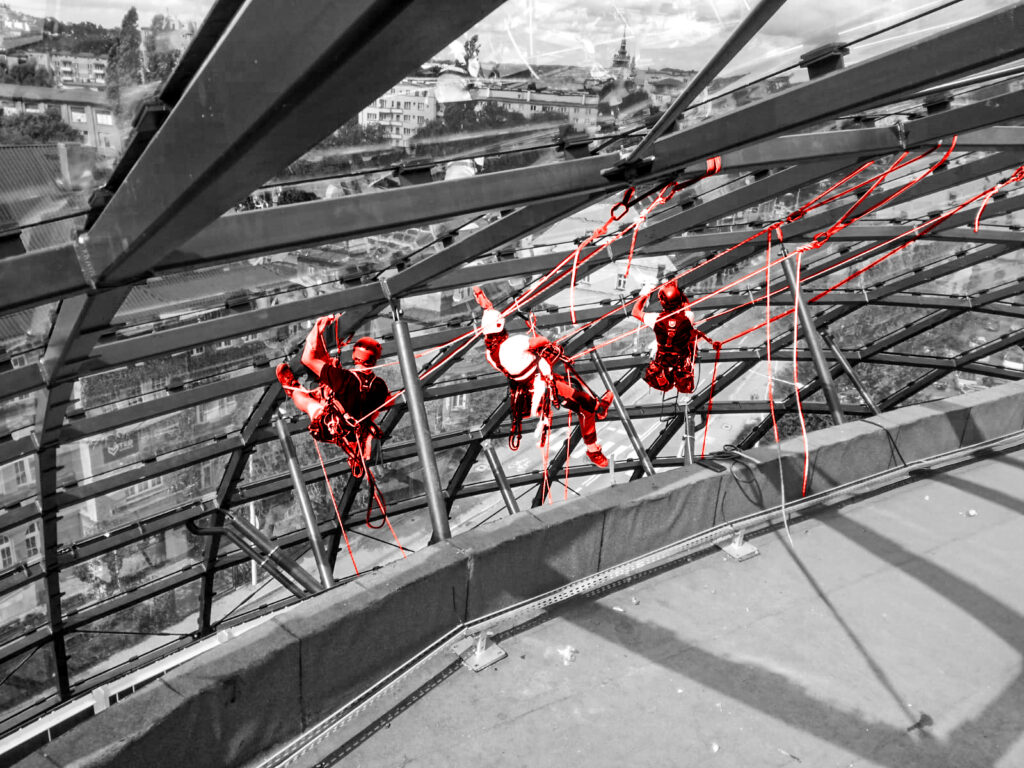 Wykorzystujemy techniki alpinistyczne oraz specjalistyczny sprzęt, który pozwala nam wykonywać prace w miejscach niedostępnych dla rusztowań czy podnośników. Stawiamy na szybkie i bezpieczne rozwiązania, minimalizując wpływ na codzienne funkcjonowanie obiektu.
